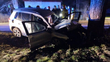Pijany i bez prawa jazdy rozbił auto na drzewie