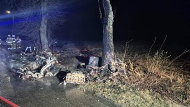 Dramatyczny wypadek w Woli Rasztowskiej. Samochód wpadł do zbiornika wodnego, dwie osoby poszkodowane