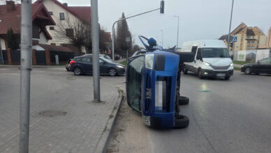 Dachowanie na ruchliwym skrzyżowaniu. Groźne zderzenie aut i natychmiastowa akcja służb