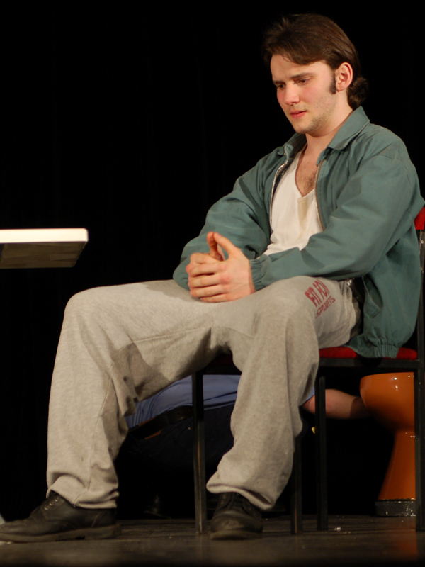 Okazuje się bowiem, że pod maską obojętności i cynizmu kryje się człowiek bardzo wrażliwy i wyraźnie zagubiony. Zaprzyjaźnił się ze Strażnikiem (Kuba Lipiński), z Księdzem (Paweł Dobek), a z biegiem czasu nawiązała się nić niebagatelnego porozumienia między nim a Dziennikarką. Spektakl wywoływał szeroką gamę emocji, podsycaną muzycznymi wstawkami Jimmy’ego Hendrixa, wplecionymi umiejętnie w fabułę przedstawienia.