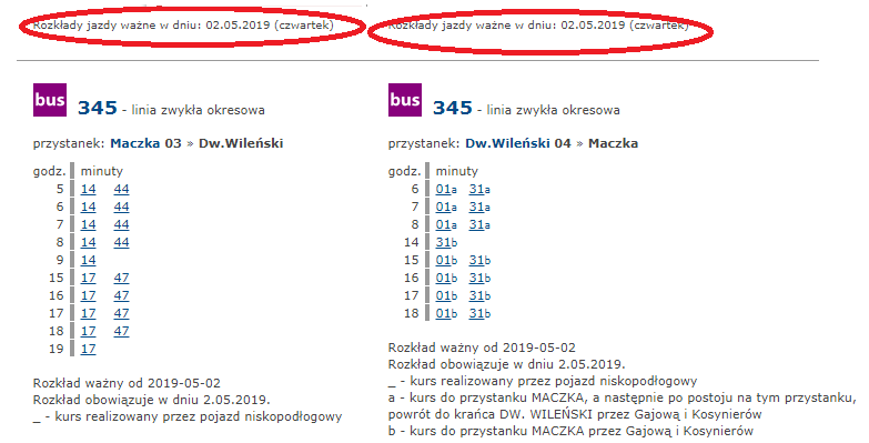 - tylko w dniu 2.05. br. od około godz. 21:00 do końca kursowania: