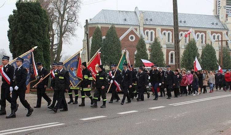 Delegacje złożyły kwiaty pod pomnikiem, a następnie przy dźwiękach muzyki wszyscy przeszli na cmentarz parafialny gdzie głos zabrał pan Konrad Rytel – Prezes MWS. Delegacje władz Gminy Jadów, SP w Myszadłach, Sp nr 2 w Jadowie, ZSP w Urlach, Mazowieckiej Wspólnoty Samorządowej oraz Konrad Rytel złożyli kwiaty na grobie żołnierza POW Władysława Białobrzeskiego, po czym udali się do Sanktuarium Krzyża Świętego, gdzie odprawiona została Msza Św. w intencji ojczyzny. Ks. Dziekan Bogdan Lewiński w kazaniu przypomniał, że patriotyzm to nie tylko wiece i kwiaty, ale codzienna troska o ojczyznę.