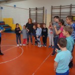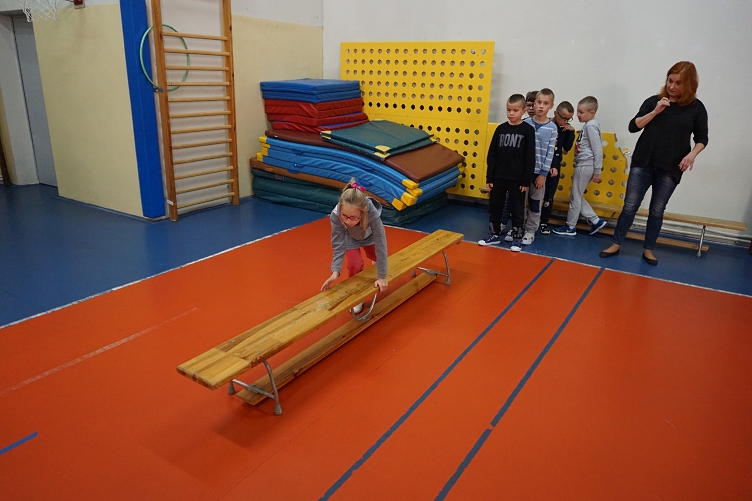 Nasze sportowe zmagania otworzyła, jednocześnie sprawdzając trudność poszczególnych zadań pani dyrektor Monika Kisielińska.