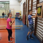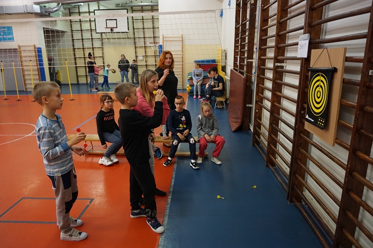 W akcji wzięli udział wszyscy uczniowie naszej szkoły sprawdzając swoją celność i precyzję w konkurencjach rzutowych, takich jak: rzuty do kosza, dart, rzuty woreczkami do hula-hop, boccia, tor przeszkód ze strzałem na bramkę.
