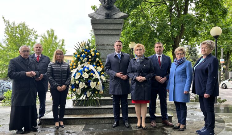 W imieniu społeczności Zielonki, burmistrz Kamil Michał Iwandowski wraz z księżmi – proboszczem parafii Matki Bożej Częstochowskiej w Zielonce i proboszczem parafii Świętego Jerzego, zastępcą burmistrza, skarbnik Miasta oraz radnymi złożyli wieniec pod pomnikiem Jana Pawła II.