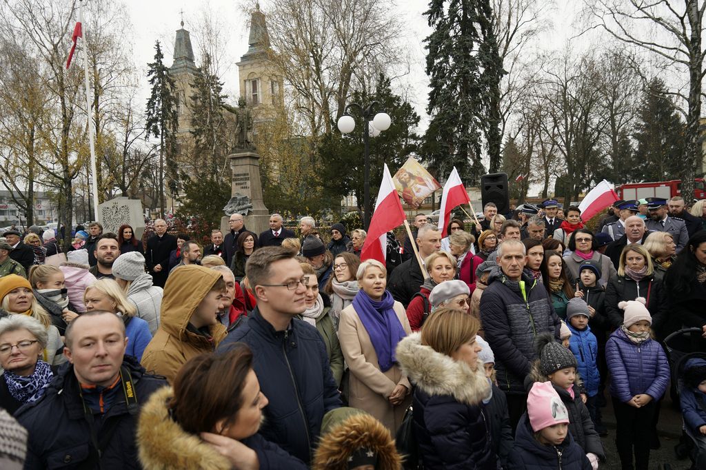 Radzymińskie uroczystości rozpoczęły się od wspólnego śpiewania hymnu na placu przed pomnikiem Tadeusza Kościuszki, gdzie zgromadził się tłum mieszkańców. Wydarzenie było promowane w ramach ogólnopolskiego programu ?Niepodległa.pl?. Do Mazurka Dąbrowskiego akompaniowała Radzymińska Orkiestra Dęta, a komendę ?Do Hymnu? dał hm. Tomasz Godlewski. Kilkaset osób wspólnie odśpiewało wszystkie cztery zwrotki hymnu.