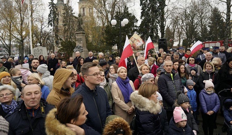 Radzymińskie uroczystości rozpoczęły się od wspólnego śpiewania hymnu na placu przed pomnikiem Tadeusza Kościuszki, gdzie zgromadził się tłum mieszkańców naszej gminy. Wydarzenie było promowane w ramach ogólnopolskiego programu ?Niepodległa.pl?. W Radzyminie śpiewaliśmy hymn z akompaniamentem Radzymińskiej Orkiestry Dętej, a komendę ?Do Hymnu? dał hm. Tomasz Godlewski. Kilkaset osób wspólnie odśpiewało wszystkie cztery zwrotki hymnu.