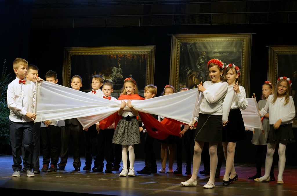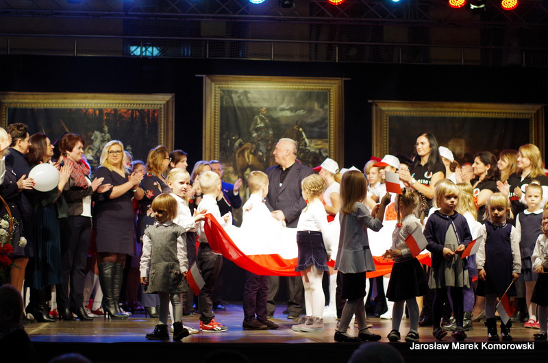 Pięknie i patriotycznie przystrojona była hala ROKiS, która w stulecie Niepodległości zmieniła się w salę koncertowo-teatralną. Część artystyczna rozpoczęła się od okolicznościowego koncertu Radzymińskiej Orkiestry Dętej w patriotycznym i rozrywkowym repertuarze. Tłumy zgromadziło widowisko ?Ballada o tej, co nie zginęła?, przygotowane przez dzieci i młodzież z Międzyszkolnego Klubu Historycznego im. Armii Krajowej Ziemi Radzymińskiej. Spektakl przedstawiał najważniejsze momenty ostatnich ponad dwustu lat historii Rzeczypospolitej w artystycznej interpretacji uczniów z ośmiu radzymińskich szkół. Były i pieśni, i poematy, i tańce, i sceny teatralne. Cała sala entuzjastycznie i ze wzruszeniem dziękowała młodym wykonawcom w ostatniej scenie widowiska.