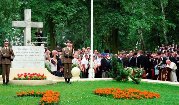 Papież Polak odwiedził Radzymin 13 czerwca 1999 r. Modlił się na Cmentarzu Żołnierzy Polskich 1920 nad grobami bohaterów wojny polsko-bolszewickiej. Spotkał się wówczas z ostatnimi żyjącymi weteranami walk oraz z licznie zgromadzonymi mieszkańcami i gośćmi. Ta modlitwa i spotkanie zostało uczczone odsłoniętym rok temu pomnikiem Papieża Polaka ? w modlitewnej pozie w miejscu, gdzie był w 1999 r.