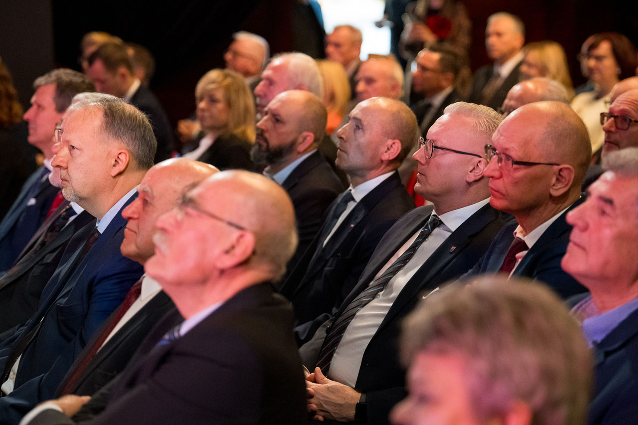 Starosta Arkadiusz Werelich w swoim przemówieniu wyraził głęboką wdzięczność dla wszystkich, którzy przyczynili się do rozwoju Powiatu Wołomińskiego, ze szczególnym wyróżnieniem pracowników starostwa.