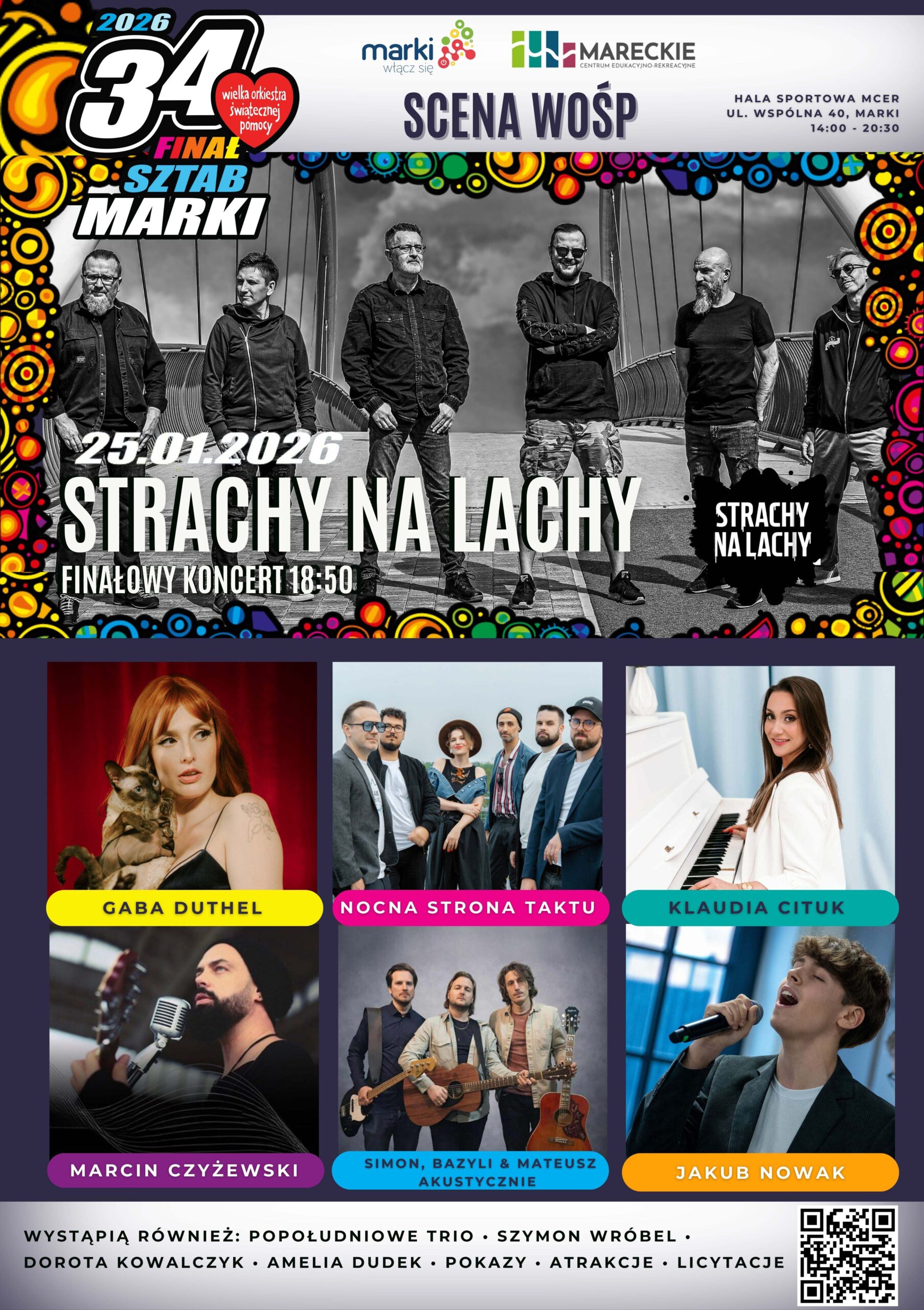 Koncerty i występy będą główną atrakcją finału. Na scenie w hali sportowej MCER wystąpią m.in. zespoły Simon, Bazyli & Mateusz Akustycznie, Nocna Strona Taktu, a także wokaliści Klaudia Cituk, Gaba Duthel i Marcin Czyżewski, finalista „The Voice of Poland”. Nie zabraknie lokalnych wykonawców, w tym Popołudniowego Trio pod egidą Mareckiego Ośrodka Kultury, oraz pokazów tanecznych przygotowanych przez kluby sportowe i szkoły tańca. Gwiazda wieczoru, zespół Strachy na Lachy, zagra koncert, o godz. 18:30, który zakończy finałowe granie.