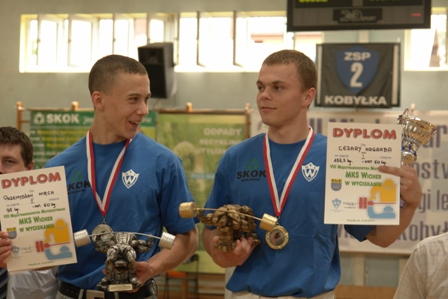 Wreszcie przy trzecim podejściu swoją próbę zaliczył Przemysław Więch i dzięki temu wszyscy zawodnicy gospodarzy zostali sklasyfikowani. Czekano jeszcze na pobicie rekordu życiowego przez Cezarego Nagrabę. Udało się! W 3 próbie ten zawodnik zadeklarował 152,5 kg. Dało mu to pierwsze miejsce w swojej kategorii wagowej oraz drugie miejsce w klasyfikacji juniorskiej. W końcu doczekaliśmy się także trzeciej próby Kozłowskiego. Zawodnik ten zadeklarował ciężar 160 kg. Wcześniej wycisnął 155 kg, co dawało mu złoty medal tych mistrzostw.