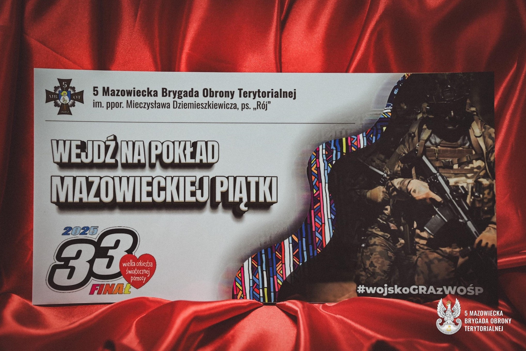 5 Mazowiecka Brygada Obrony Terytorialnej ponownie zagra z Wielką Orkiestrą Świątecznej Pomocy. Na 33. Finał przygotowano wyjątkowe przedmioty, które pozwolą poznać bliżej tradycję, misję oraz codzienną służbę żołnierzy. To niepowtarzalna okazja, aby stać się częścią Mazowieckiej Piątki.