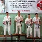 Srebrny medal i tytuł wicemistrza makroregionu wschodniego w kategorii do 65 kg kontaktowych walk juniorów zdobył Karol Burzyk, który w drodze do finału pokonał przeciwników z Olsztyna i Piaseczna. Wszystkie walki eliminacyjne Karola kończył się jego wyraźną przewagą punktową. Natomiast decydujący pojedynek mistrzowski z reprezentantem Suwałk trwał aż trzy rundy, po których sędziowie wskazali minimalną przewagę przeciwnika i mimo porażki walki Karola zrobiły duże wrażenie na zgromadzonych kibicach.