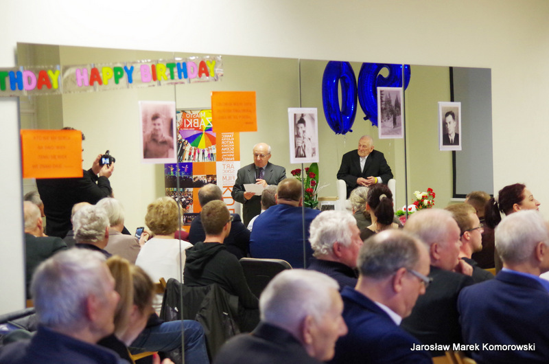 Uroczystość prowadził konferansjer Dariusz Dudkiewicz, który  powitał zaproszonych gości i przybliżył gościom postać  90-letniego Jubilata.  Laudację Jubilata w 15 minutowym przedstawił  Jerzy Boksznajder, były Burmistrz Miasta Ząbki.