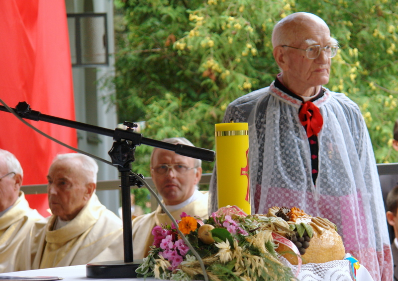 – Gdy patrzyliśmy na postać Ś.p. ks. Prałata Jana w tych ostatnich dniach. Gdy patrzyliśmy na Niego i Jego radość z okazji kolejnej rocznicy wielkich wydarzeń, mieliśmy ciągle to samo wrażenie, że jako najstarszy z nas wszystkich, On zawsze tu był. W życiu tych, którzy Go znali On zawsze był, od zawsze. I ulegamy takiemu złudzeniu, że On będzie zawsze. Tak jak ten krajobraz, który nas otacza, te wszystkie życiowe stałe odniesienia, które zawsze są. Tymczasem odszedł. Odszedł pełniąc swoją służbę. Odszedł, gdy według swojego żołnierskiego regulaminu był na służbie. Gdy blisko rok temu obchodziliśmy Jego 60. lecie święceń kapłańskich widzieliśmy tę sylwetkę Kapłana – kruchego już, pochylonego, ale Kapłana który cały czas służył. Kilka dni przed Jego śmiercią, ktoś mnie zapytał: Dlaczego On chce udzielać Komunii świętej, podtrzymywany z obu stron. Dziś już rozumiemy dlaczego. Robił to, bo był na służbie. Jego kapłaństwo było po prostu żołnierskim obowiązkiem i ten obowiązek wykonywał aż do śmierci. Widzieliśmy jak niszczał Jego zewnętrzny Człowiek. Widzieliśmy jak wiek zaznacza się w Jego postawie, ale czuliśmy, że odnawia się w Nim z dnia na dzień Jego Człowiek wewnętrzny. Że On żyje ciągłą młodością, ciągłą radością. To był Człowiek, uśmiechnięty, który mimo cierpień i niedogodności wieku i zdrowia służył, był tam, gdzie być powinien.