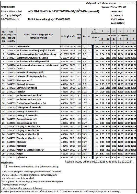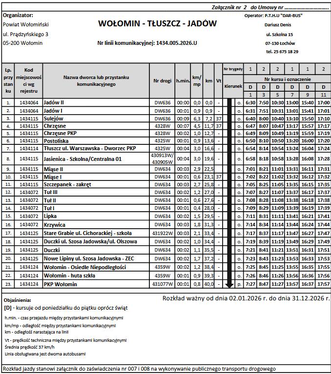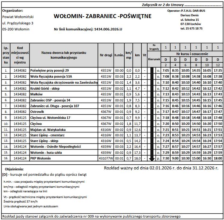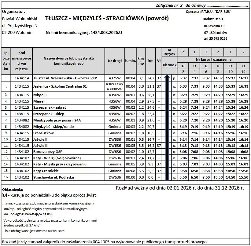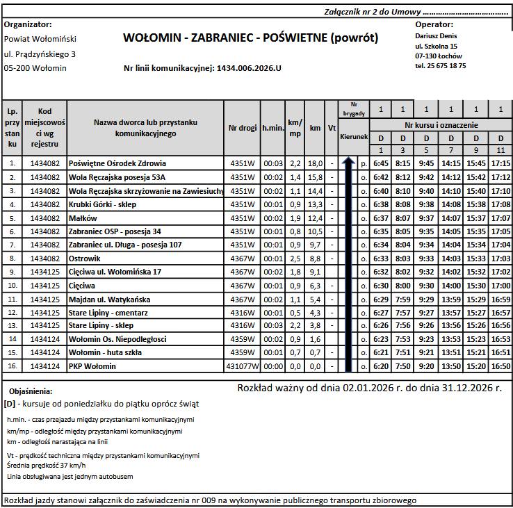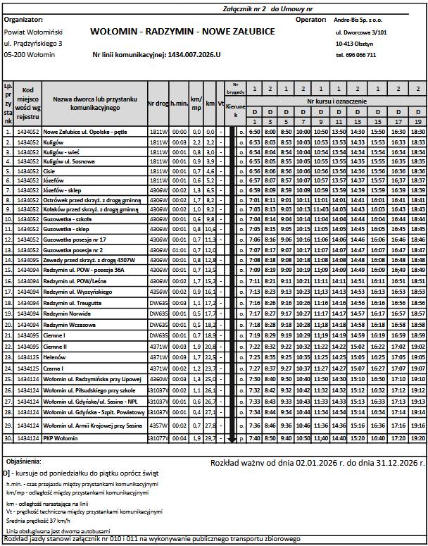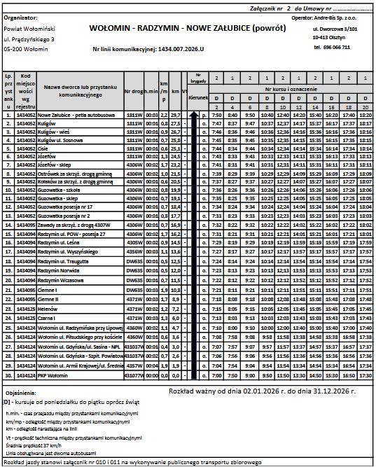 Z początkiem 2026 roku Starostwo Powiatowe w Wołominie zaktualizowało rozkłady jazdy bezpłatnych powiatowych linii autobusowych.