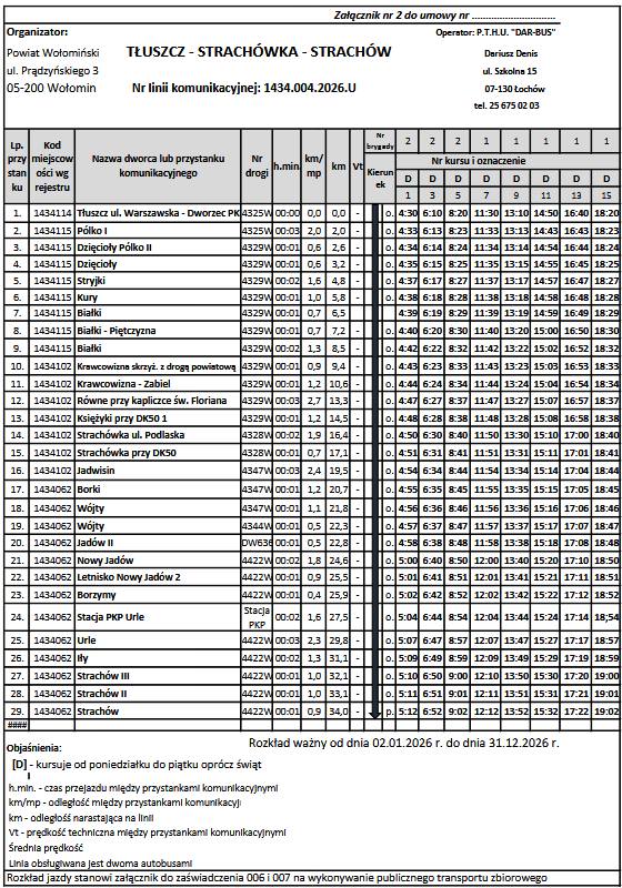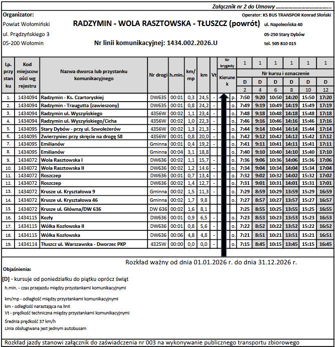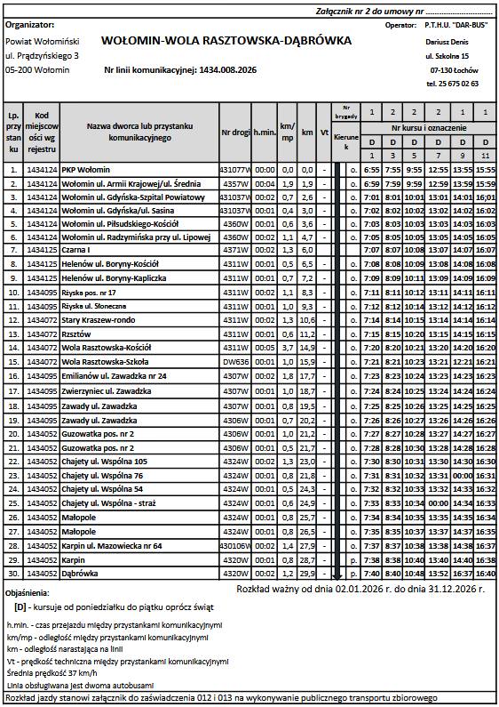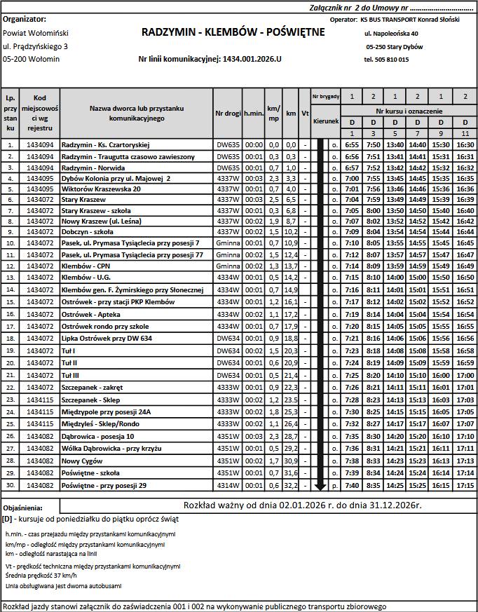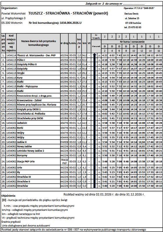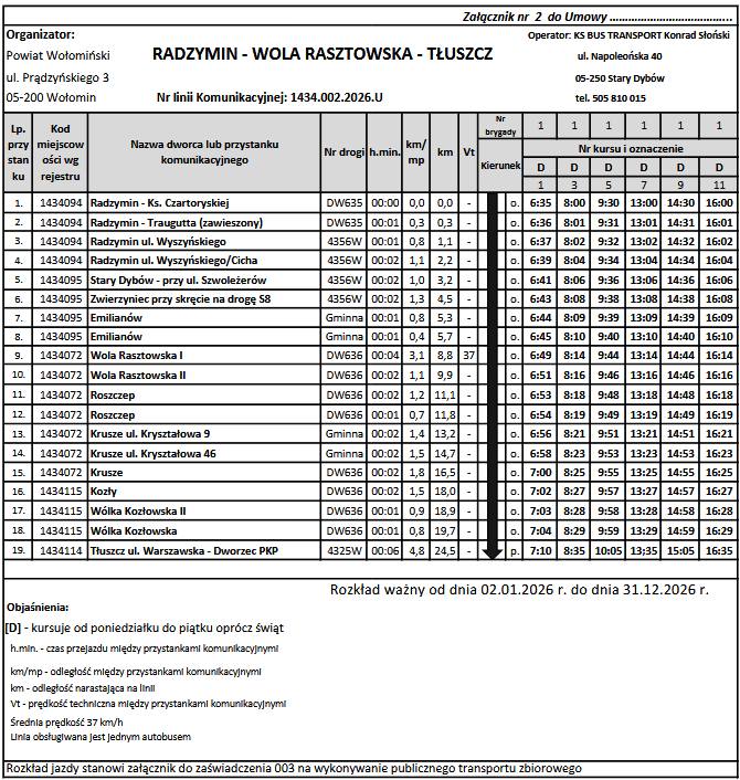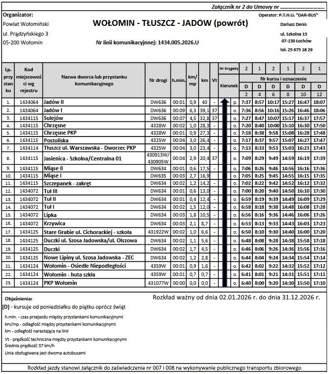 Z początkiem 2026 roku Starostwo Powiatowe w Wołominie zaktualizowało rozkłady jazdy bezpłatnych powiatowych linii autobusowych.
