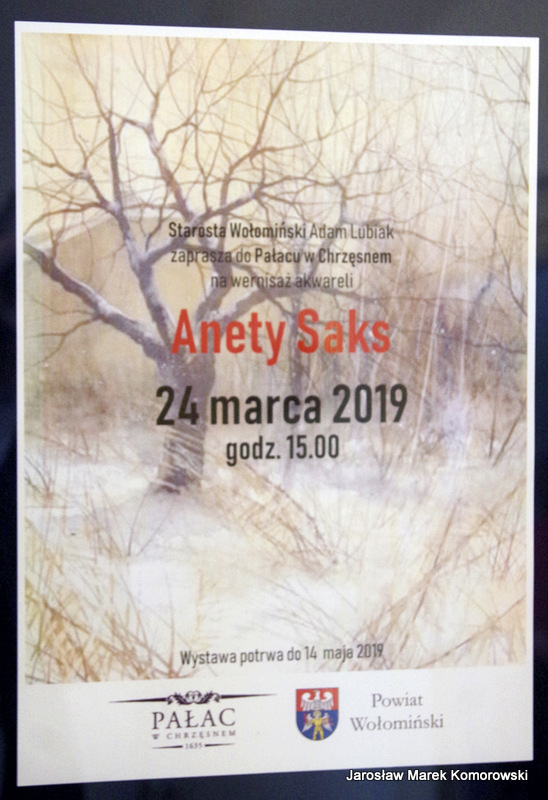 Prawdziwie wiosenna aura przyciągnęła do Chrzęsnego tłumy gości. O godz. 15.00 inaugurowana została wystawa prac artystki związanej z powiatem wołomińskim. Aneta Saks w swojej twórczości wiele miejsca poświęca przyrodzie i architekturze. W jej akwarelach często możemy odnaleźć wołomińskie budynki czy uliczki. Na wernisażu pojawili się przyjaciele i wielbiciele talentu malarki. Artystka po raz pierwszy swoje prace zaprezentowała w Pałacu w Chrzęsnem. Jej dzieła będziemy mogli podziwiać do 13 maja.