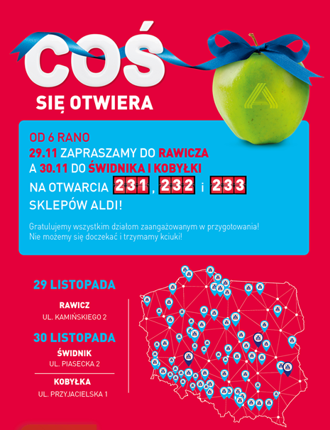 – Każde otwarcie sklepu ALDI to dla nas ogromny sukces, jest to potwierdzenie naszego rozwoju. Jako sieć jesteśmy dziś obecni w każdym województwie i chcemy także zagościć w większości polskich domów. Nasi klienci wiedzą, że w ALDI znajdą lokalne i międzynarodowe produkty wysokiej jakości, ponieważ ALDI ma to coś, czego nie ma nigdzie indziej, po co warto wracać do nas, zgodnie z myślą Raz ALDI zawsze ALDI. Wierzymy, że klienci naszej nowej lokalizacji w Kobyłce znajdą również to „coś” i zyskają przekonanie, że ALDI to pewność udanych zakupów.” – mówi Wojciech Seroczyński, Kierownik Sprzedaży ALDI w Polsce.
