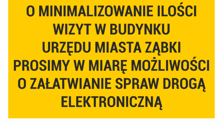 UM Ząbki apeluje do mieszkańców o minimalizowanie ilości wizyt w budynku Urzędu Miasta Ząbki i prosi w miarę możliwości o załatwianie spraw drogą elektroniczną.