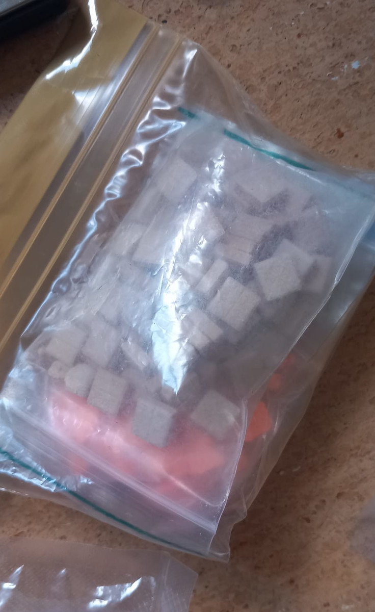 Podczas przeszukania mieszkania kryminalni znaleźli w pokoju i w kuchni w lodówce różnego rodzaju środki odurzające popakowane w torebki foliowe, słoiki i plastikowe pojemniki. Wewnątrz znajdował się susz roślinny, różnokolorowe substancje sypkie i zbrylone oraz tabletki.