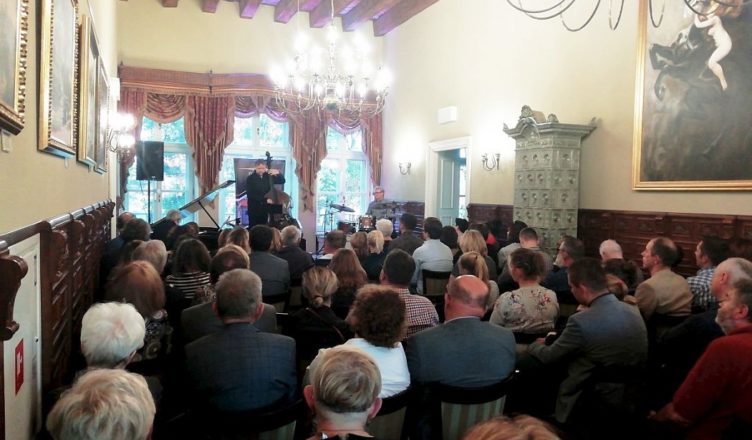 Najpierw odbył się wernisaż wystawy pt. Człowiek-Emocje-Natura, podczas którego była możliwość poznania prac Kamili Lipki, Janusz Poddenka i Ewy Siarkiewicz. Tematem przewodnim prezentowanych prac były przede wszystkim emocje i nastroje, jakie odczuwa każdy z nas. Często trudno nam je wyrazić, bo są tłumione czy zniekształcane przez wszędobylski hałas wokół. ?Jednak nasze spojrzenie zawsze zdradza prawdę (…) mamy wrażenie, że ludzie już tylko w samotności, z dala od wszystkiego, pośród natury, zdejmują swoje maski i nie boją się swoich uczuć i emocji?. W roślinnych kolażach Janusza Poddenka, wielkich formatach Kamili Lipki czy malutkich grafikach Ewy Siarkiewicz odnajdziemy indywidualne echo okalającej rzeczywistości w postaci wręcz jasno określonego rodzaju emocji, nastroju czy autoportretu w formie kolażu. Nieprzypadkowe wyeksponowanie refleksyjnej dziewczyny pośród dwóch obrazów lasu jest także symboliczne. Drugim elementem dodatkowo podkreślającym walor artystyczny niedzielnego popołudnia w Pałacu był koncert TRIO Andrzeja Jagodzińskiego, który zaprezentował muzykę Jana Sebastiana Bacha w świetnej i wysmakowanej aranżacji jazzowej. Publiczność usłyszała m.in.: Preludium C-dur (BWV 846), Partitę nr 2 c-moll (BWV 826) sinfonia, Preludium es-moll (BWV 853), Preludium c-moll (BWV 999), Arię na strunie G (BWV 1068) oraz Koncert d-moll (BWV 1052) Adagio. Słuchając wielogłosowych utworów Bacha z XVIII w., niezwykle łatwo było przenieść się w wiek XXI. Instrumenty ze sobą dialogowały w sposób płynny, harmoniczny, przenikający się, a właściwie może powiedzieć, że muzyczną rozmowę prowadził nastrojowy Andrzej Jagodziński grający na fortepianie z dynamicznym Adamem Cegielskim na kontrabasie i liryczno-żywiołowym Czesławem Bartkowskim na perkusji. Koncert zakończył utwór Chopina także w niewiarygodnej, mistrzowskiej aranżacji jazzowej.