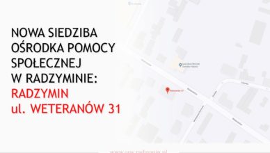 Od 8 lipca zmiana siedziby Ośrodka Pomocy Społecznej w Radzyminie. Nowy adres: Radzymin, ul. Weteranów 31, (w budynku tym, wcześniej urzędował Powiatowy Urząd Pracy).