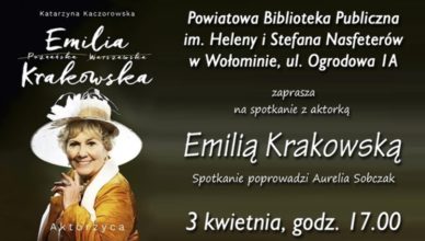 Powiatowa Biblioteka Publiczna zaprasza na spotkanie z aktorką Emilią Krakowską, które odbędzie się w dniu 3 kwietnia (środa) o godzinie 17.00 ul. Ogrodowa