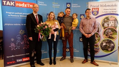 W Urzędzie Miasta i Gminy Radzymin Wicestarosta Wołomiński Robert Szydlik wręczył rodzinie z Radzymina 9-tysięczną Powiatową Kartę Rodziny. Pani Justyna i pan Michał, rodzice trójki dziewczynek