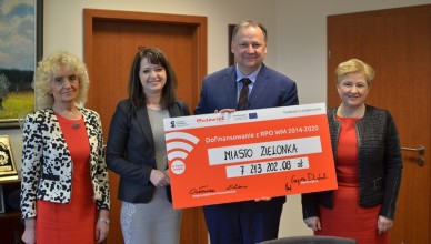 Dzięki funduszom unijnym w Zielonce powstanie parking ?Parkuj i Jedź?. Umowy w tej sprawie podpisali wicemarszałek Janina Ewa Orzełowska, członek zarządu województwa mazowieckiego,