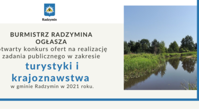 Burmistrz Radzymina ogłasza otwarty konkurs ofert na realizację zadania publicznego w zakresie turystyki i krajoznawstwa w gminie Radzymin w 2021 rok. Rodzaj zadań