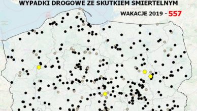 Mapa wypadków drogowych ze skutkiem śmiertelnym ? WAKACJE 2019
