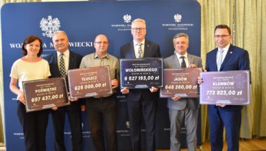 W czwartek w Mazowieckim Urzędzie Wojewódzkim w Warszawie Starosta Wołomiński Adam Lubiak odebrał z rąk Wojewody Mazowieckiego Zdzisława Sipiery symboliczny czek na ponad