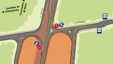 W dniach 16-19 lipca 2018 r. (całą dobę) w Radzyminie będzie zamknięty zjazd z ul. M. Konopnickiej w al. Armii Krajowej w związku z budową ciągu pieszo-rowerowego w ul.