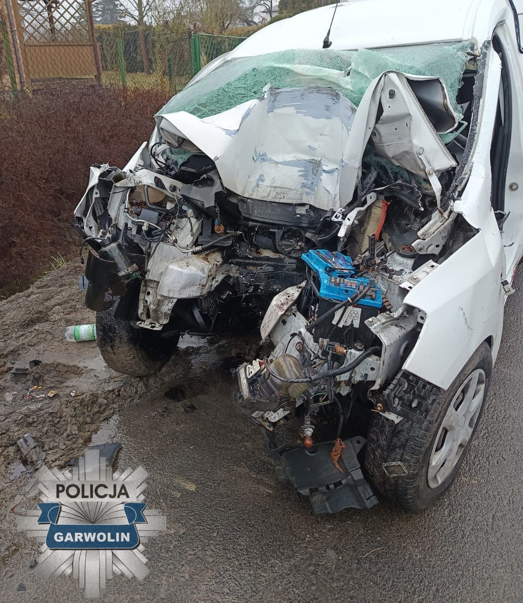 Dzisiaj (28.02) o godzinie 7.06 dyżurny garwolińskiej komendy odebrał zgłoszenie, że w miejscowości Czyszkówek samochód uderzył w słup energetyczny i jedna osoba została poszkodowana. Policjanci pracujący na miejscu zdarzenia ustalili, że 30-ltatek kierujący dacią prawdopodobnie na chwilę zasłabł lub zasnął za kierownicą, stracił panowanie nad pojazdem, zjechał na pobocze i uderzył w słup. Mieszkaniec powiatu garwolińskiego podróżował sam. Był trzeźwy. Mężczyzna trafił do szpitala, a auto zostało poważnie uszkodzone.