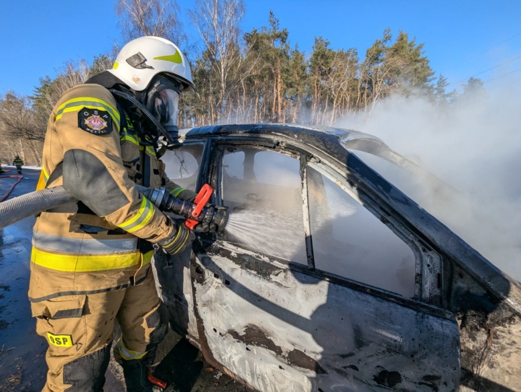 Po przybyciu na miejsce zdarzenia strażacy zastali samochód osobowy w całości objęty pożarem. Ogień obejmował cały pojazd, a intensywne zadymienie było widoczne z dużej odległości. W chwili powstania pożaru pojazdem podróżował kierujący wraz z dzieckiem. Na szczęście, dzięki szybkiej reakcji i zachowaniu zimnej krwi, po zauważeniu pierwszych oznak zagrożenia oboje opuścili pojazd jeszcze przed rozwinięciem się pożaru i nie odnieśli żadnych obrażeń.