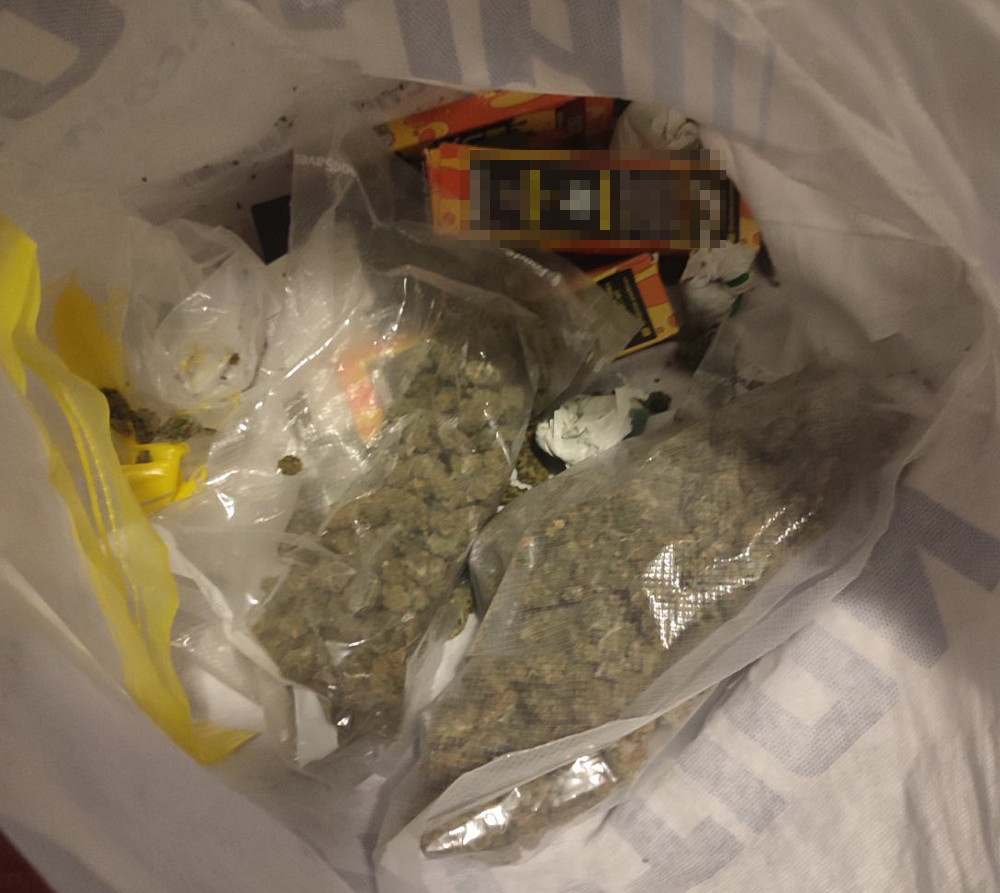 25-latek i jego o rok starsza znajoma byli zdenerwowani. Starali się wytłumaczyć policjantom, co było powodem ich sprzeczki. Mundurowi zwrócili uwagę na wyraźny zapach marihuany wyczuwalny w pokoju. Skontrolowali pomieszczenie. Znaleźli w nim dwie torby zawierające różne substancje popakowane w przezroczyste torebki i dwie wagi elektroniczne. Na sąsiednim balkonie policjanci znaleźli również plecak, w którym znajdowały się kolejne torebki i pojemniki z różnymi substancjami.