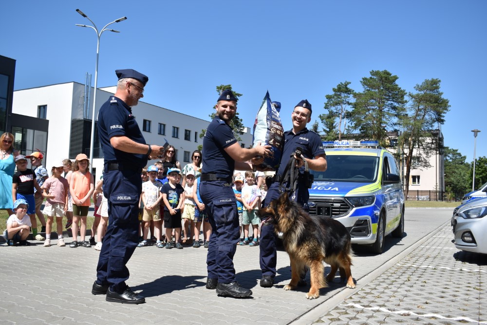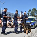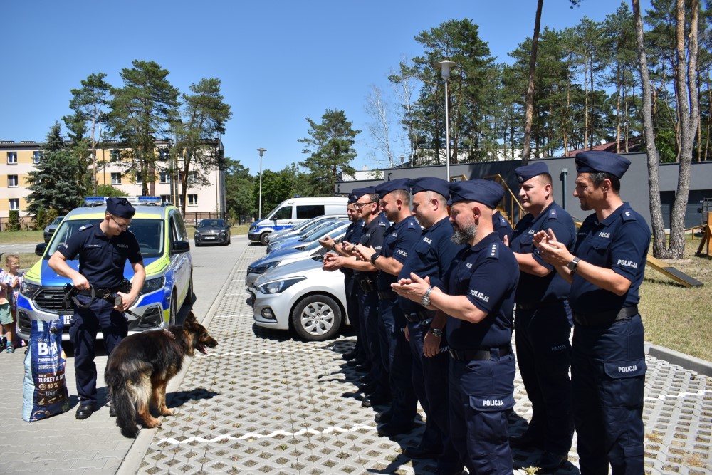 W dniu wczorajszym w Komendzie Powiatowej Policji w Otwocku odbyła się odprawa z okazji pożegnania policyjnego psa służbowego. Podczas odprawy Komendant Powiatowy Policji w Otwocku insp. Przemysław Dębiński założył „Baremu” pamiątkową obrożę i wręczył wyprawkę, by mógł cieszyć się smakołykami na emeryturze. W odprawie obok policjantów uczestniczyły dzieci z „Patkowego Przedszkola”, które również przyszły pożegnać psa służbowego. Dzieci wręczyły ręcznie wykonaną laurkę oraz smakołyki. „Bary” służył w otwockiej jednostce od 2018 roku, wielokrotnie jego umiejętności przyczyniły się do rozwiązania sprawy kryminalnej oraz odnalezienia osoby zaginionej.
