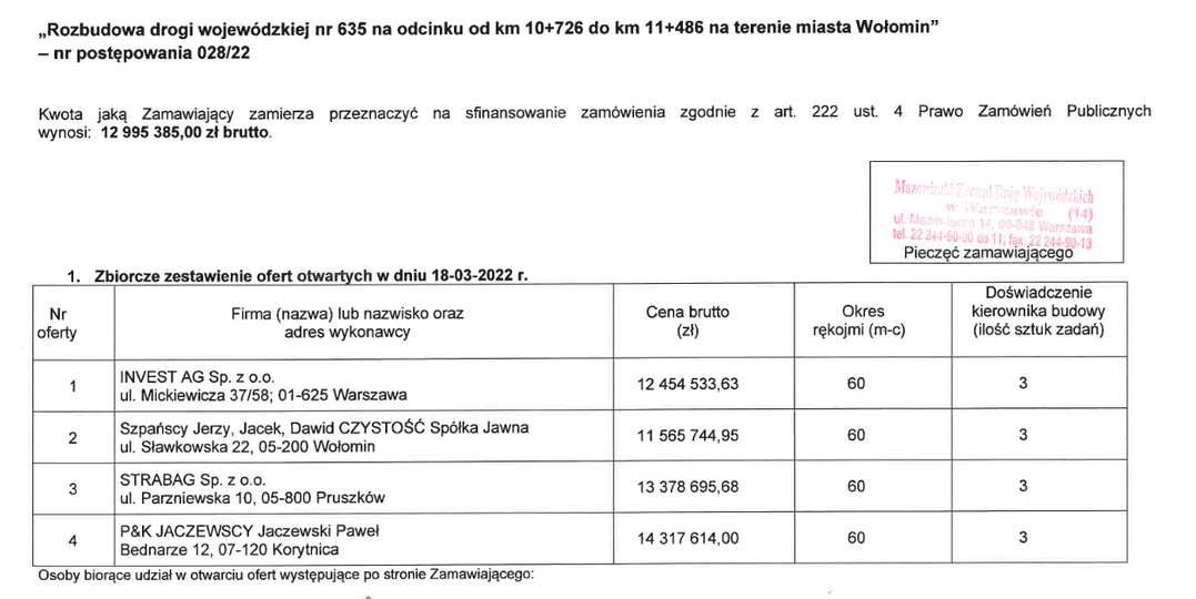 W dniu 18 marca nastąpiło otwarcie ofert na realizację inwestycji o czym poinformował radny powiatowy Igor Sulich. – Jest szansa na rozstrzygnięcie przetargu i to duża ? napisał z nieskrywaną radością na swoim profilu na FB.