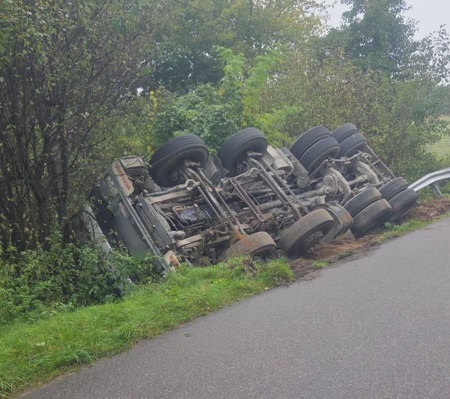Dziś 7 października po godzinie 10. na drodze powiatowej W3054, w pobliżu Poczernina, doszło do zdarzenia z udziałem pojazdu ciężarowego typu „gruszka”, czyli samochodu przeznaczonego do transportu mieszanki betonowej.