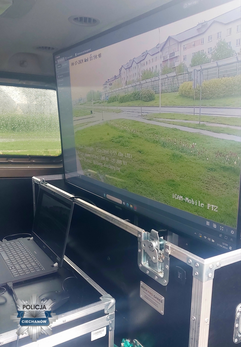 Wczoraj (17.04) policjanci Wydziału Ruchu Drogowego Komendy Powiatowej Policji w Ciechanowie wraz z funkcjonariuszami Wydziału Prewencji Komendy Wojewódzkiej Policji zs. w Radomiu po raz kolejny prowadzili na terenie Ciechanowa działania, mające na celu poprawę bezpieczeństwa niechronionych uczestników ruchu drogowego, podczas których wykorzystywany był mobilny system monitoringu iCam. Jest to system kamer umożliwiający rejestrację obrazu oraz jego zdalną transmisję do komputera.