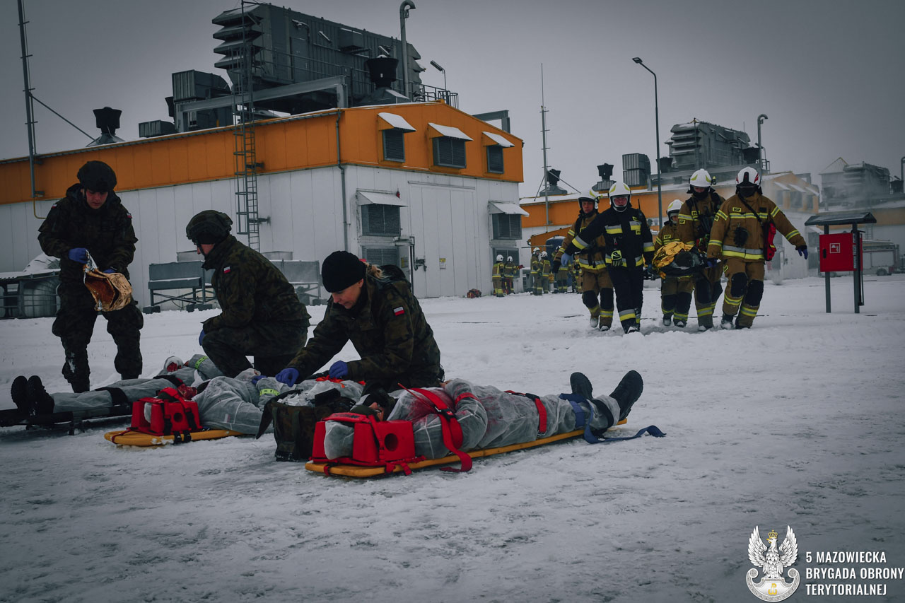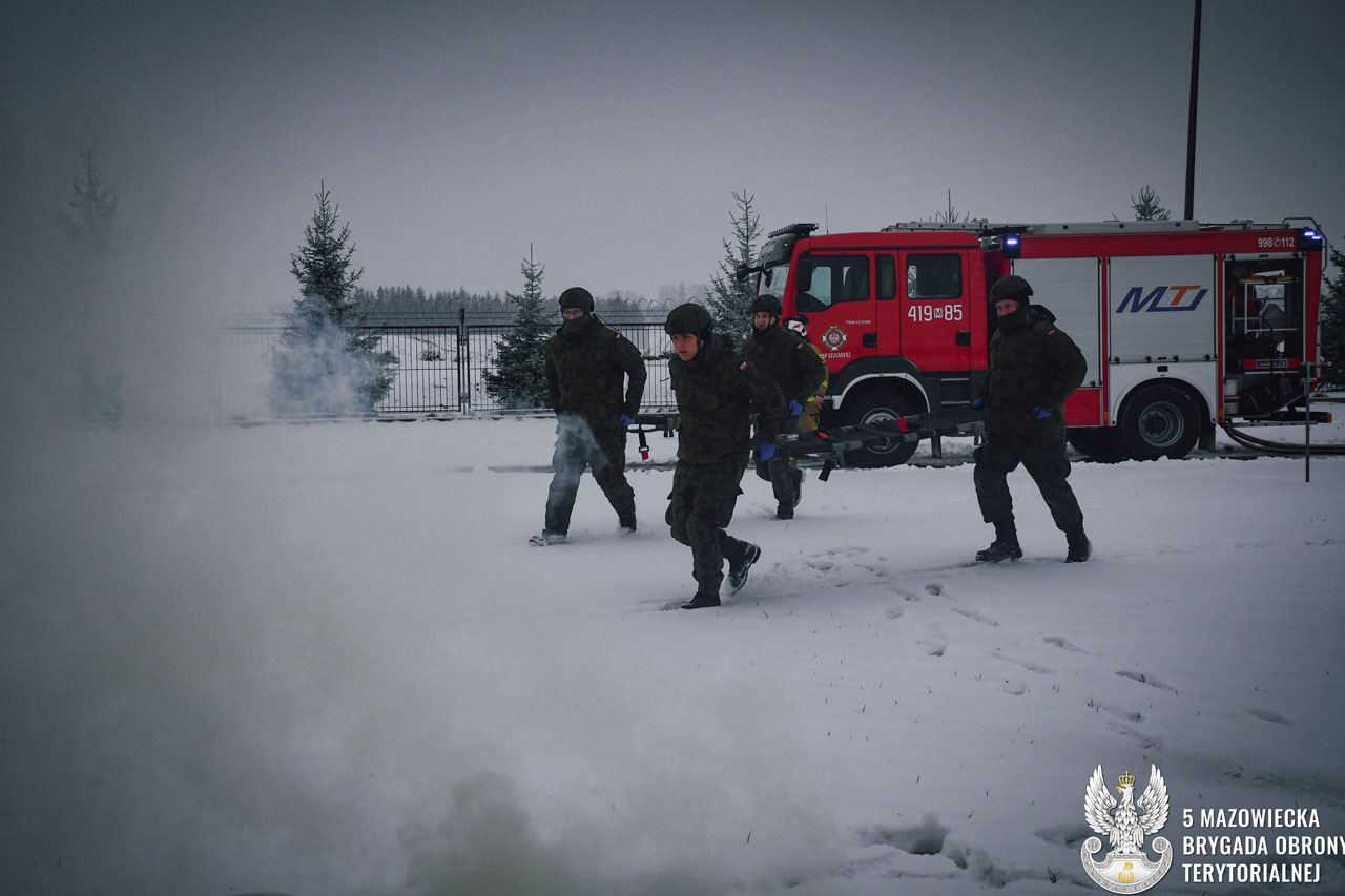 Symulowany wybuch gazu, ranne osoby, ewakuacja, transport, zabezpieczenie miejsca zdarzenia, piesze patrole i posterunki obserwacyjne – tak właśnie wyglądało szkolenie rotacyjne żołnierzy 5 Mazowieckiej Brygady Obrony Terytorialnej. Terytorialsi w miniony weekend współpracowali razem z Ochotniczą Strażą Pożarną doskonaląc umiejętności podczas akcji kryzysowej na terenie Tłoczni Gazu „Europol”.