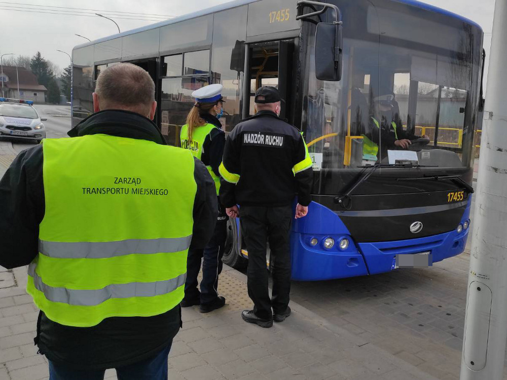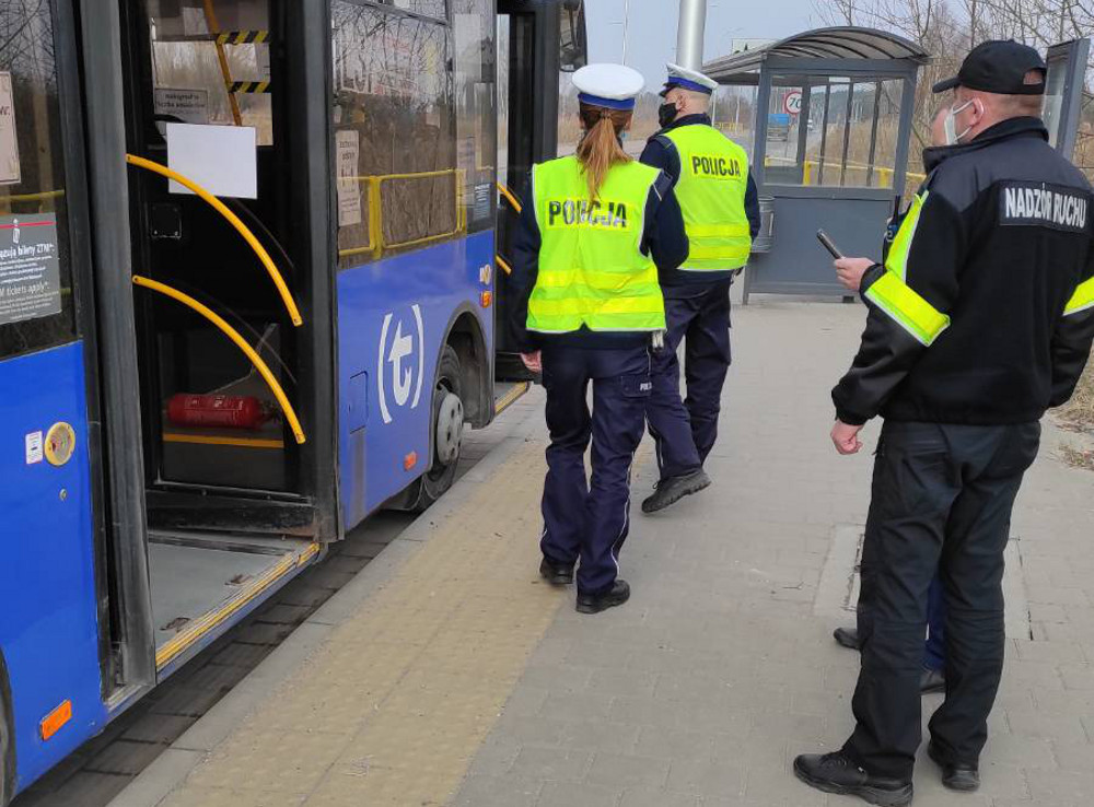 Policjanci ruchu drogowego wołomińskiej Komendy wspólnie z pracownikami Zarządu Transportu Miejskiego z Warszawy prowadzą na terenie powiatu wołomińskiego działania kontrolno-prewencyjne pn. ?Bezpieczna Komunikacja Miejska”. Mają one na celu ujawnianie i eliminowanie nieprawidłowości związanych z wykonywaniem transportu drogowego osób i rzeczy, oraz bezpieczeństwa w transporcie zbiorowym w czasie epidemii koronawirusa.
