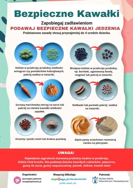 Podstawowe zasady dotyczące zapobiegania zadławieniom jedzeniem zostały przedstawione na poniższym plakacie.