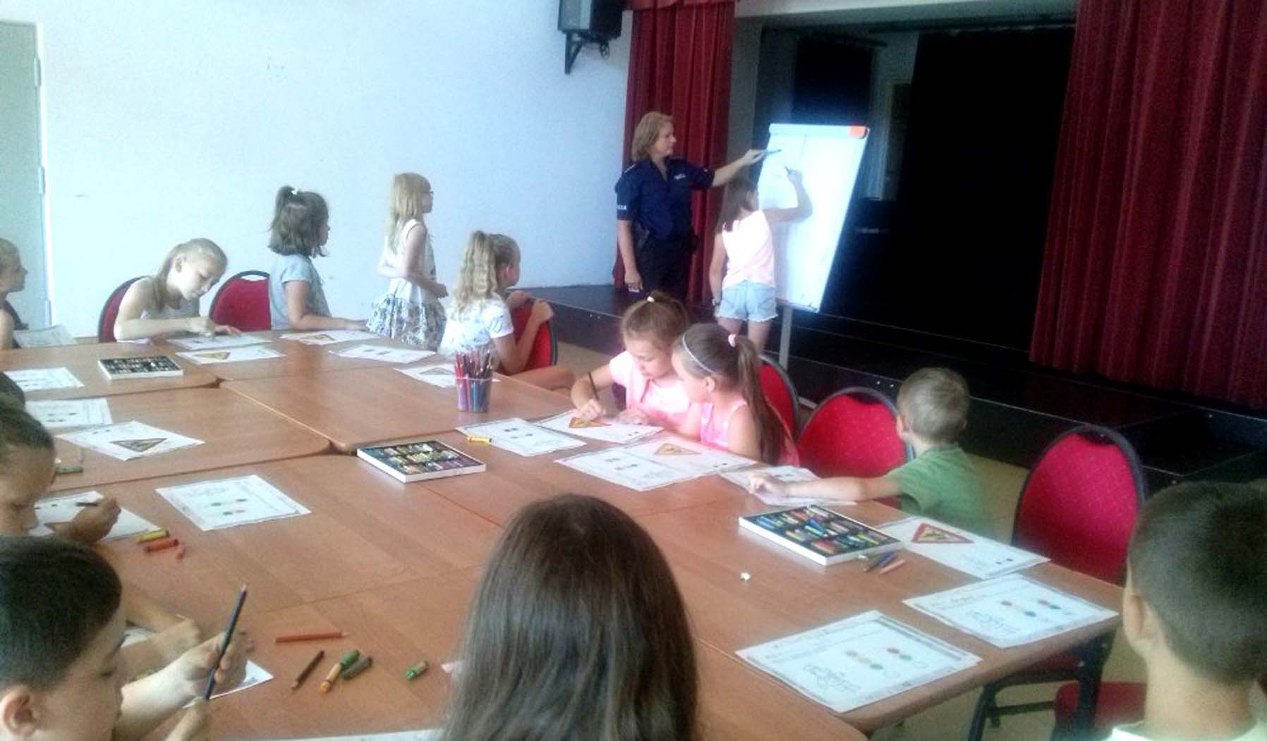 Mali uczestnicy spotkania dowiedzieli się jak bezpiecznie zachowywać się na drodze, jak pokonywać przejazd kolejowy, jak bezpiecznie korzystać z kąpielisk, jak zachowywać się w kontakcie z agresywnym psem czy też jak zachować ostrożność w kontaktach z obcym dorosłym. Policjantka przygotowała też szereg konkursów sprawdzających i utrwalających dopiero co zdobytą wiedzie. Dzieci znakomicie odpowiadały na pytania.