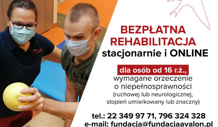 Działająca od 2006 r. Fundacja Avalon zaprasza osoby z niepełnosprawnością (ruchową lub neurologiczną) na bezpłatną, indywidualną rehabilitację online. To projekt ?Aktywność kluczem do niezależności?, dofinansowany ze środków Państwowego Funduszu Rehabilitacji Osób Niepełnosprawnych.
