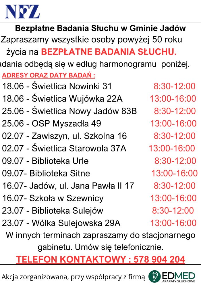 Bezpłatne badanie słuchu w Gminie Jadów!