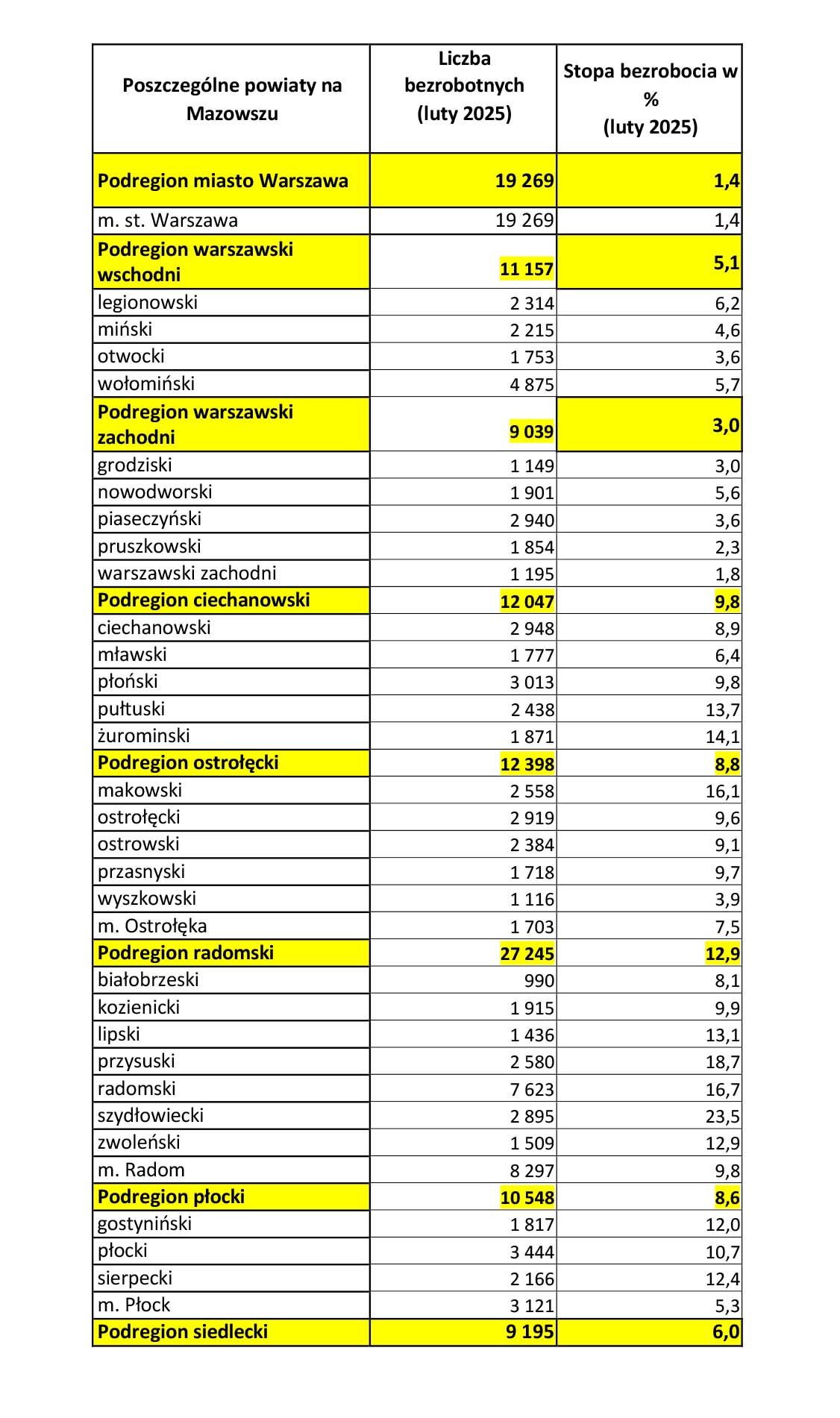 Na Mazowszu występuje duże terytorialne zróżnicowanie stopy bezrobocia. W porównaniu do stycznia 2025 spadła ona w 14 powiatach województwa mazowieckiego, w 20 z nich wzrosła, a w 8 pozostaje na tym samy poziomie.