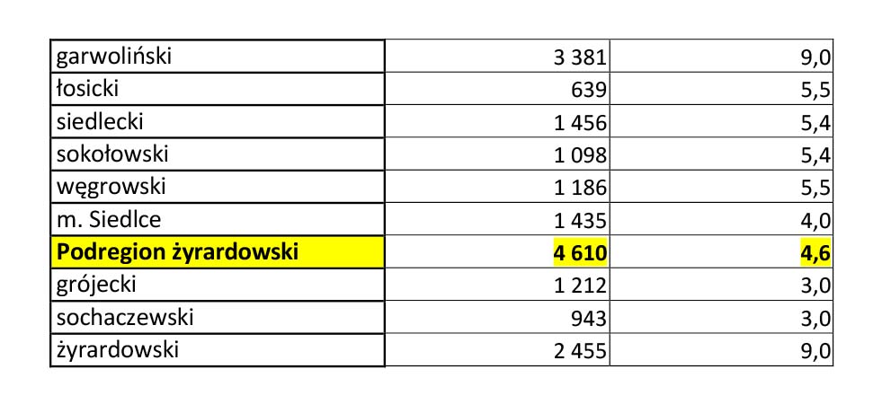 Tak jak w poprzednich miesiącach najmniej osób bezrobotnych mamy w Warszawie (1,4%), a najwięcej w powiecie szydłowieckim (23,5%).
